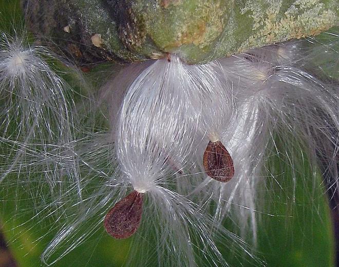 卵形的种子整齐地排列在果实内部的胎座上,顶端具有白色的绢质种毛,种毛的长度可达种子长度的5-10倍。